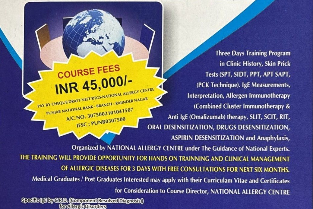 We have an innovative technique of allergy testing (PCK Technique) to diagnose-Food and Respiratory Allergy in infants, children and dermographism in Urticaria patients by S.A.P.T. method ( Skin Application Pressure Test) and Prick-Prick test.